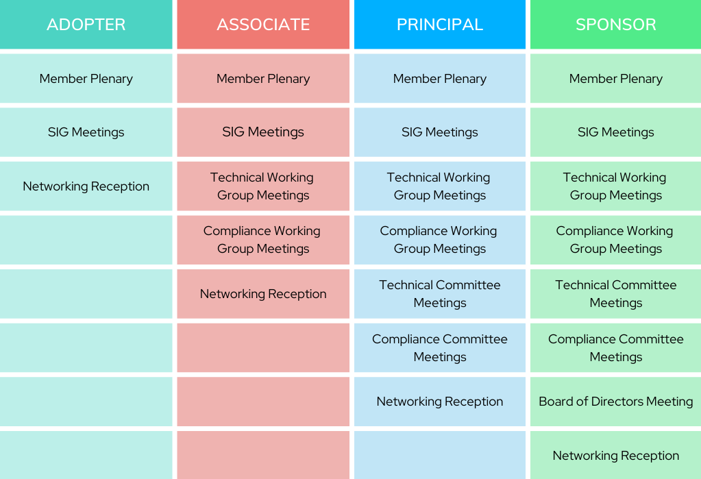 Per Bylaws: Sponsor & Principal get unlimited discounted, Associate get 2, Non-Profit get 1, Adopters get 0.